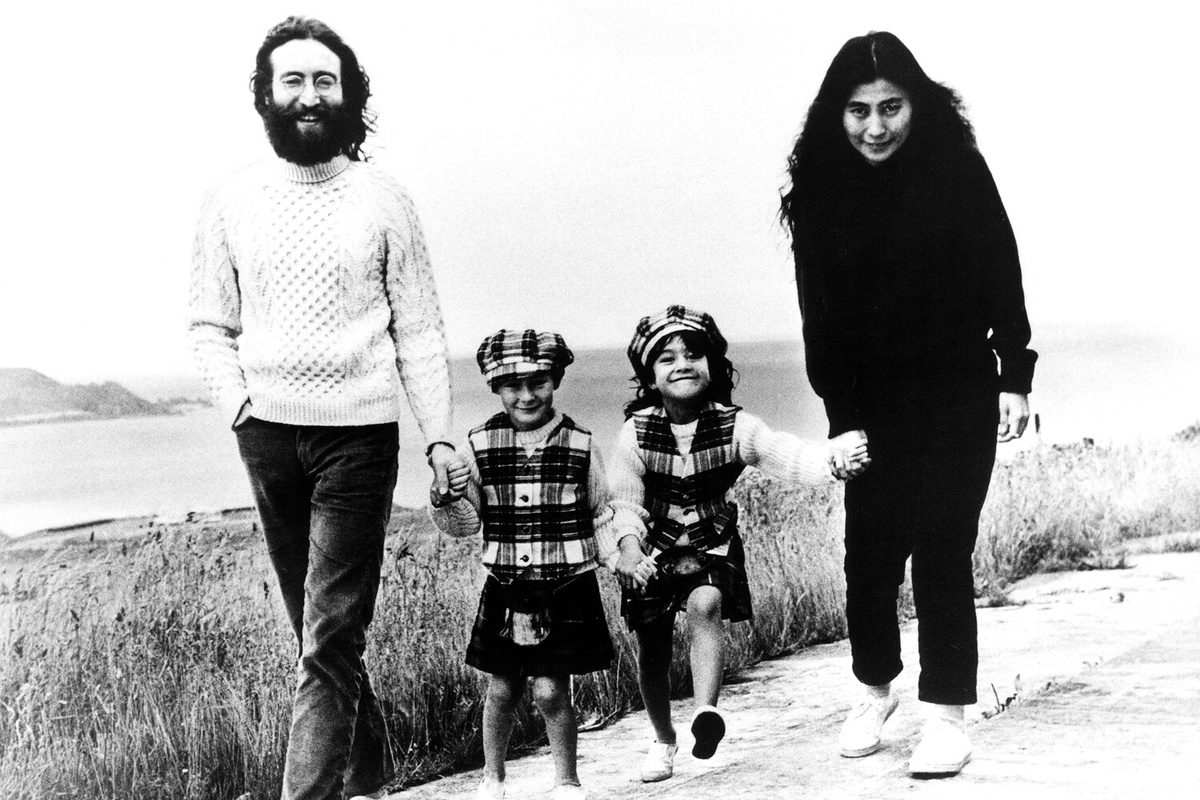 Джон с сыном Джулианом и Йоко с дочерью Киоко