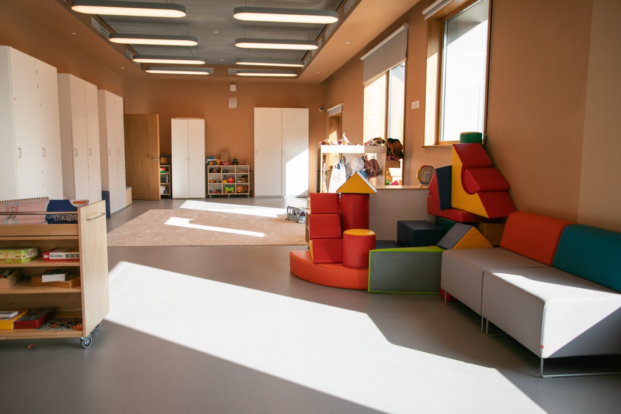 Пространство детского сада создано таким образом, чтобы каждый мог показать, как он видит этот мир. Стены группы украшены работами ребят, есть галерея детских рисунков и даже созданы специальные модули для игр и занятий творчеством.