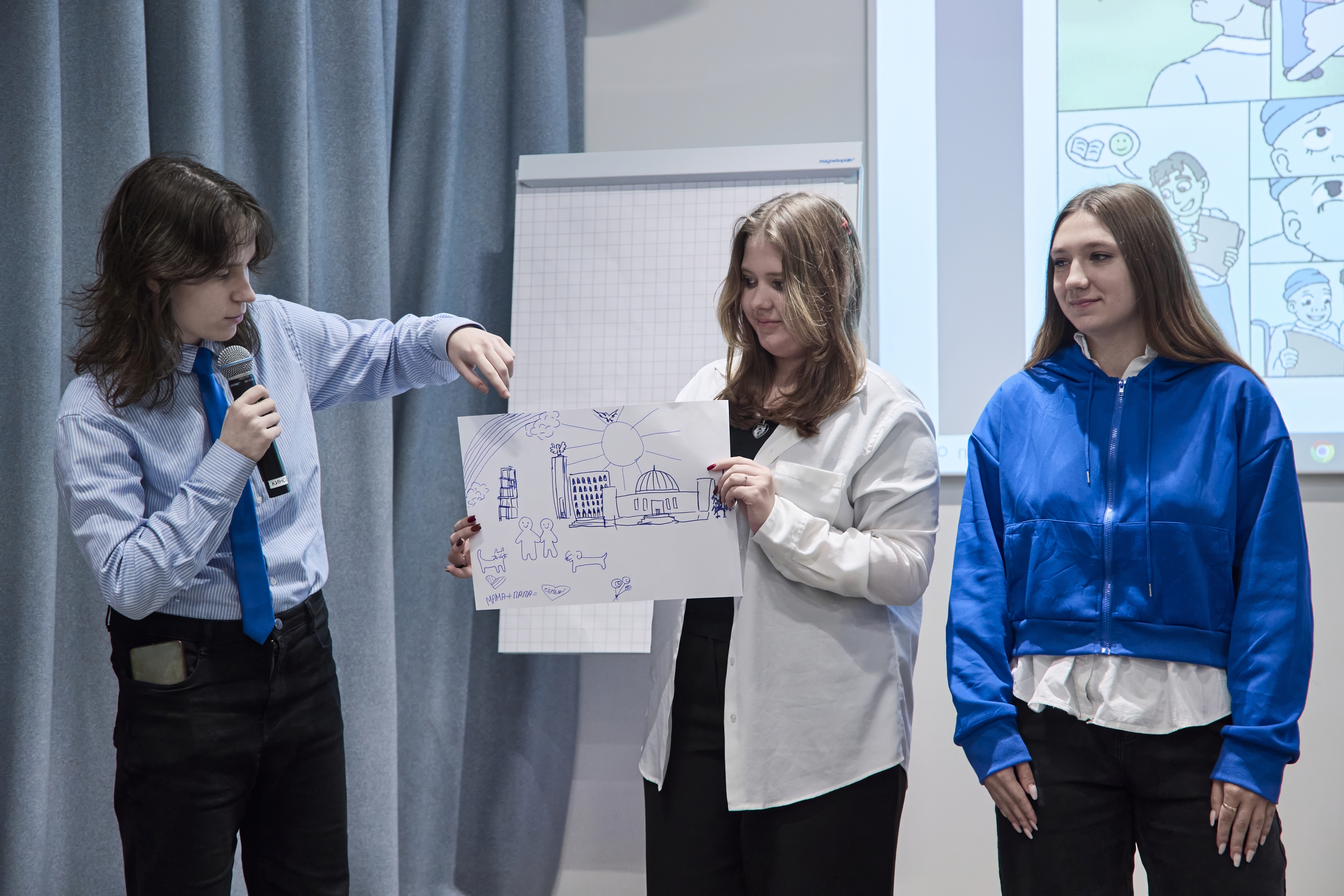 Собравшимся раздали листочки с разными кейсами буллинга (например, мальчик плохо слышит и чувствует себя одиноким в детском коллективе; девочка боится выходить к доске, потому что над ней все смеются и так далее). Участники должны были рассказать о том, что могут предпринять в разных ситуациях свидетели: например, выступить в защиту жертвы, поддержать его добрым словом или смайликом; наконец, пожаловаться взрослым – родителям, учителям, классным руководителям и таким образом получить от них содействие в предотвращении травли.