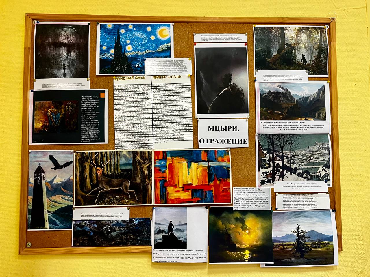 Элла: «В «Звёздной ночи» Ван Гог передаёт не просто пейзаж, а вихрь чувств. Это не спокойная природа, а внутренний мир полный тревоги, тоски и жажды чего-то большего – как раз то, что переживал Мцыри, запертый в монастыре и мечтающий о родине. В монастыре – серые стены, тишина, отсутствие жизни. А за его пределами – Кавказ: горы, ветер, бурные реки, дикие звери. Так и в «Звёздной ночи» – тихая деревня внизу, будто спящая, и бушующее небо над ней, как символ подавленного, но неукротимого духа. Мцыри чувствует себя заточённым в чужом мире, но его душа рвётся к чему-то возвышенному, космическому, необъятному».
