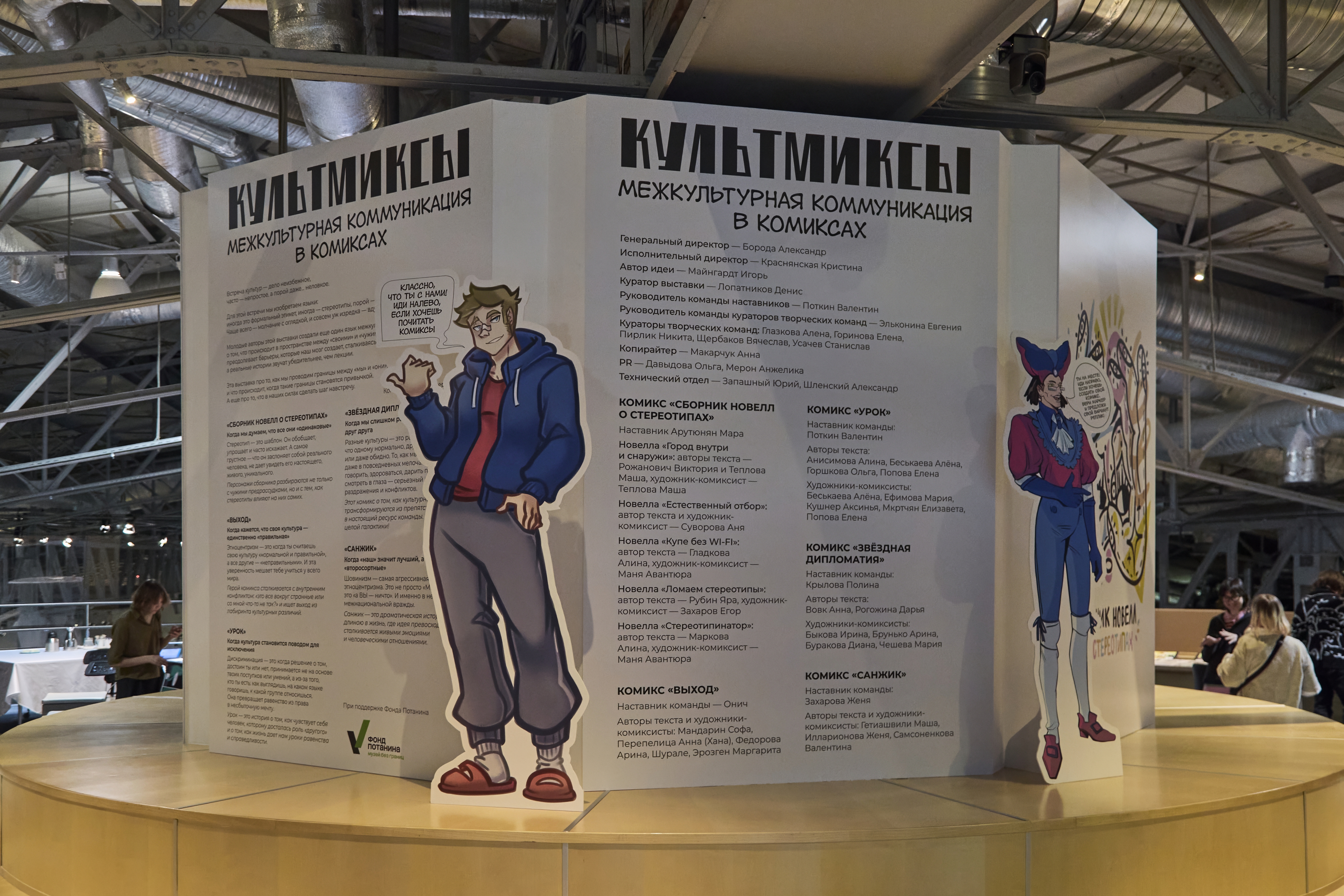 В ноябре в Еврейском музее и центре толерантности открылась необычная выставка «КультМиксы» – пять графических новелл, созданных командами молодых людей от 16 до 23 лет. Каждый комикс рассказывает о проблемах межкультурной коммуникации: этноцентризме, дискриминации, шовинизме, стереотипах и культурной дистанции.