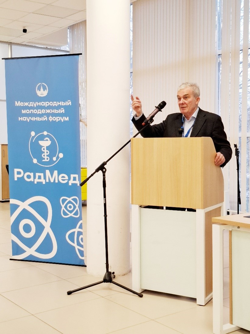 Выступая с приветственным словом, заместитель директора департамента государственной политики в сфере научно-технологического развития Минобрнауки РФ Али Габибович Асадов указал на особую роль радиационных и медицинских физиков в борьбе с онкологическими заболеваниями. По его словам, эти люди «умеют смотреть сквозь материю, видеть цель и попадать в неё», имея в виду, очевидно, очаги раковых опухолей.