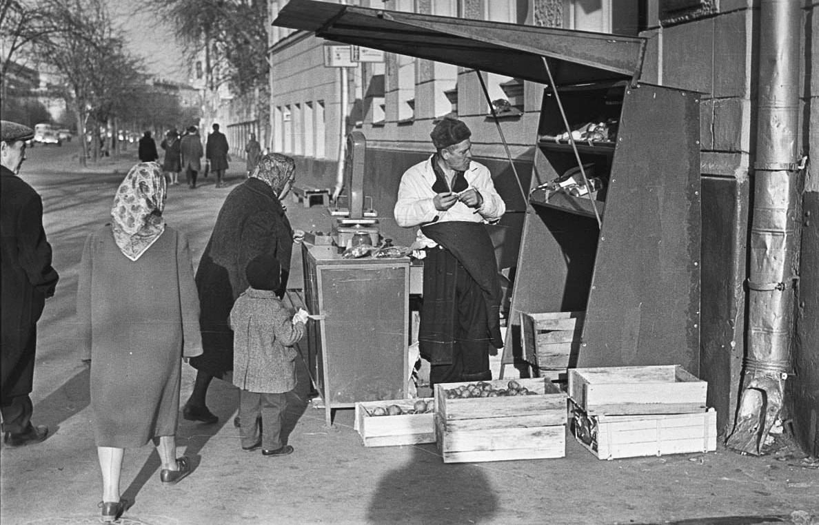Это тоже где-то в центре. Где на уличной «точке» дядька в ушанке, а не та девушка, ради которой можно забыть обо всех условных «авокадо» (которых нет в СССР), лишь увидев ее за прилавком.