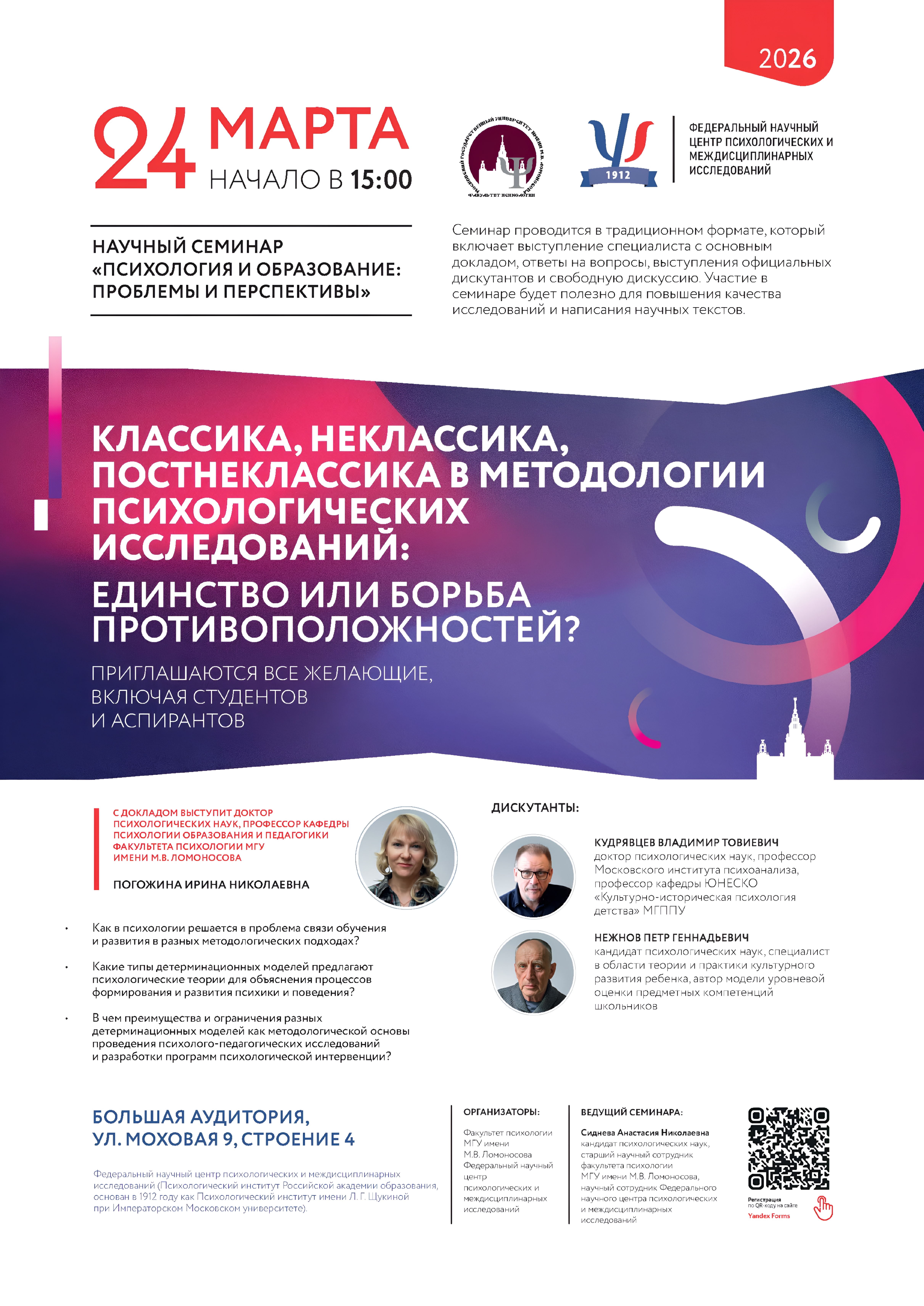 Анонс // Новость24 марта состоится научный семинар «Психология и образование: проблемы и перспективы»Вести образования / 23 марта 2026Теги:семинарпсихологияанонсЧитайте также в рубрике «Анонс»Государственная академическая капелла Санкт-Петербурга, Музей советских игровых автоматов и другие необычные места, в которых пройдёт Тотальный диктант в этом году 9 апреляВ СКОЛКЕ пройдёт конференция #ВДЕЛЕ_кадры для космической экономики 8 апреляФонд «Обнажённые сердца» запустил информационную кампанию «Аутизм: у меня нет есть слов» 2 апреля