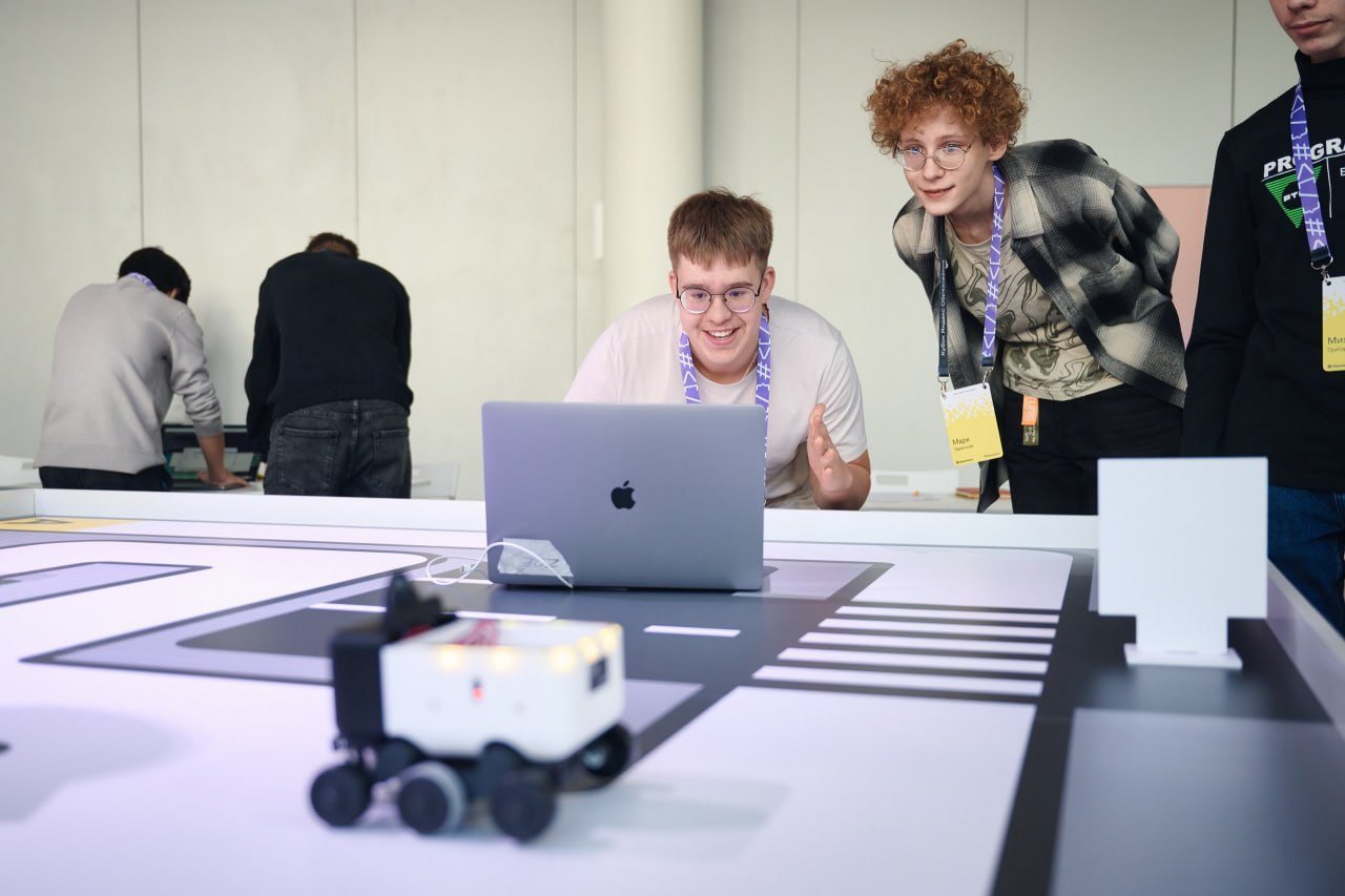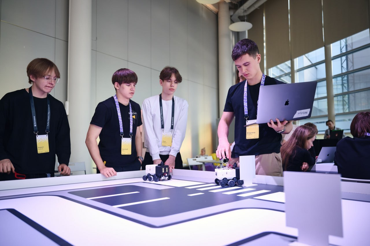 После финалисты приняли участие в командном хакатоне по ИИ-робототехнике: программировали портативных роботов-доставщиков, оснащённых сенсорами, для решения задач по навигации. Школьники разработали алгоритм автономного управления для прохождения маршрута за минимальное время, самостоятельно создали датасет из данных с камеры робота и написали Python-скрипт, объединяющий компьютерное зрение и логику движения. Готовые проекты испытали на полигоне: жюри оценивало, насколько успешно робот-доставщик сможет распознать дорожную ситуацию и преодолеть маршрут.