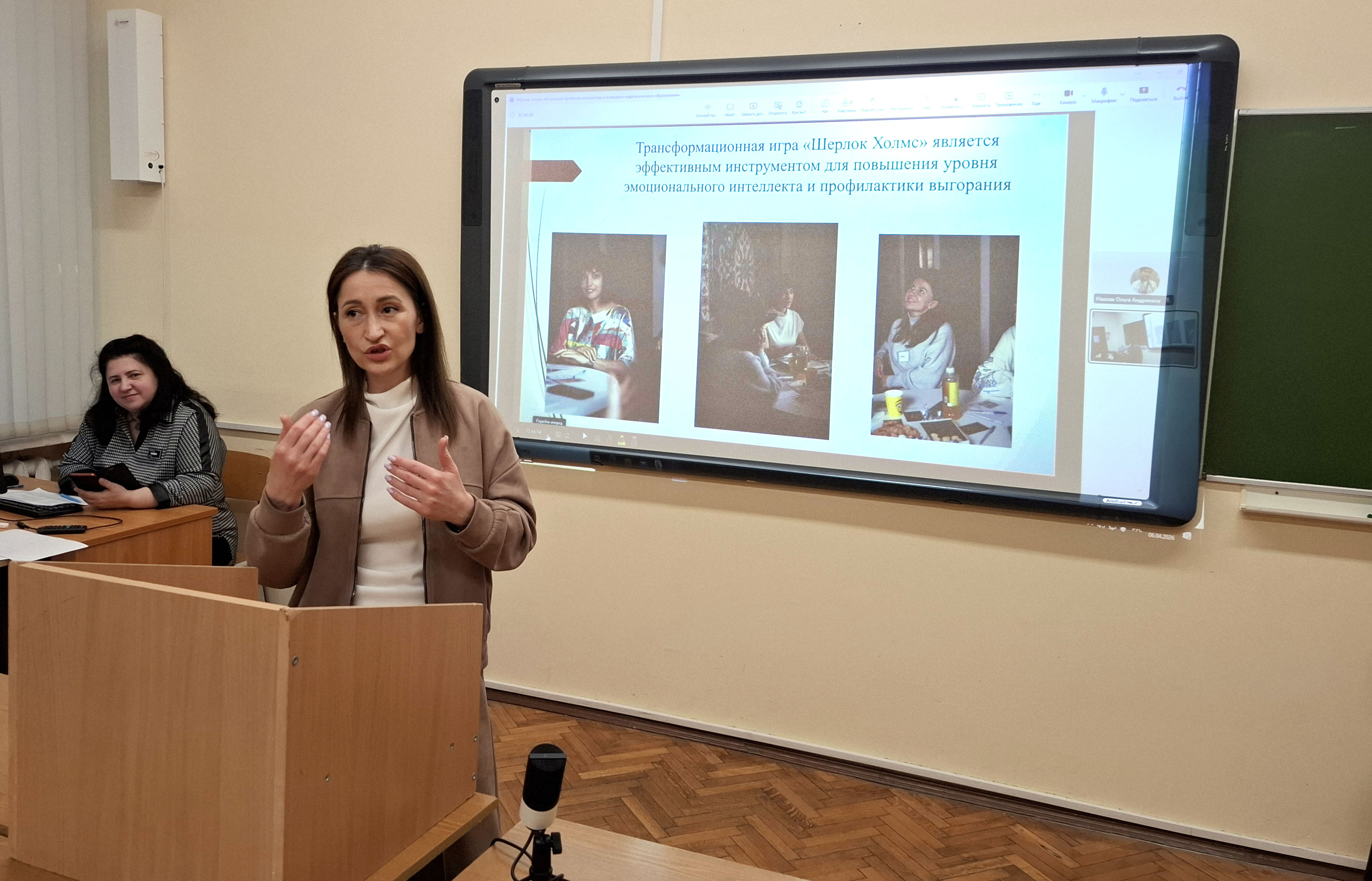 Студентка Гуманитарного института Татьяна Гавриловна Софьина разработала трансформационную игру «Шерлок Холмс». По её собственному признанию, сама она пришла в психологию из медицины, и созданный ей продукт предназначен тоже для медиков – в данном случае, для медсестёр, чтобы помочь им избежать профессиональной деформации и эмоционального выгорания. Но игра вполне может быть востребована и представителями других профессий – в частности, педагогов и воспитателей.