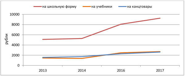 Рис. 2. Динамика трат россиян на сборы детей в школу