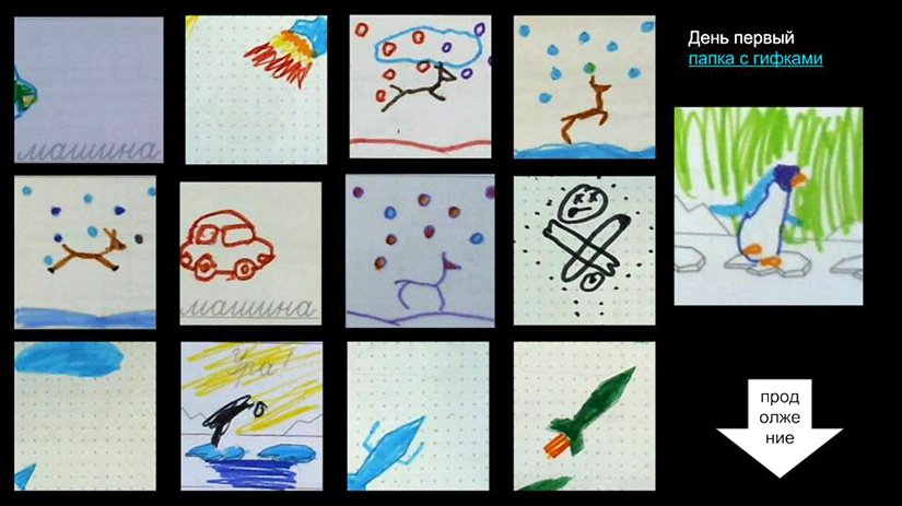 А если под руками нет этих самый специальных листов с мультипликацией? Не беда. Даже если вместо разных кадров обвести и сфотографировать одинаковые листы из самых обычных школьных прописей, получается неожиданно живой материал. Каждый же обвел его хоть чуть-чуть по-своему. И при смене кадров изображения начинают дрожать и колебаться – привлекать внимание к тому, как все по-разному выполнили одну и ту же работу.