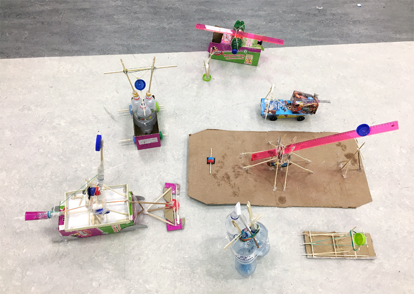 Во втором кабинете, мастерской «Школы инженерной культуры», мне встречаются Валерий и Дмитрий, мальчики, в руках они держат устройство, напоминающее корабль или башню.