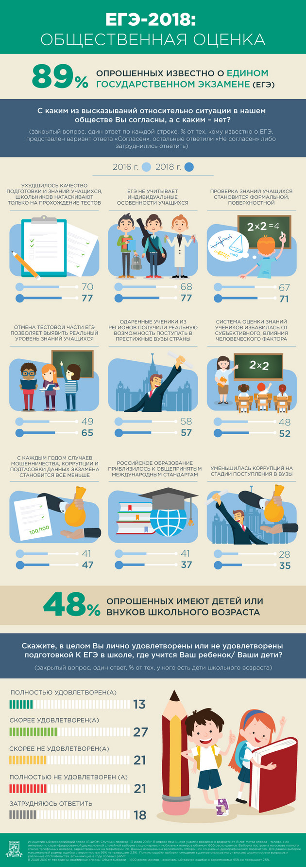 Всероссийский центр изучения общественного мнения (ВЦИОМ) провёл опрос о том, как россияне воспринимают единый государственный экзамен.
