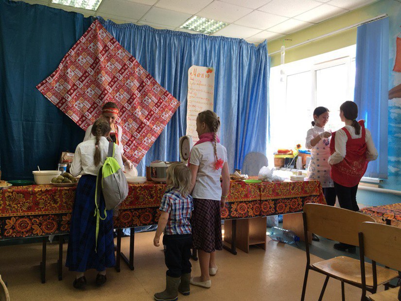 У нас все время родительское сообщество около школы. Родители устраивают школьные ярмарки, рисуют (много рисунков, родительских работ на стенах висят), поют, вместе с детьми работают в мастерских.