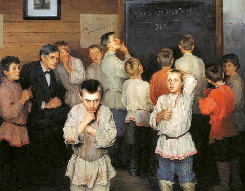 Многие люди, наверное, видели картину Н.П. Богданова-Бельского, бывшего пастушка, ученика С.А. Рачинского «Устный счет» (1895).