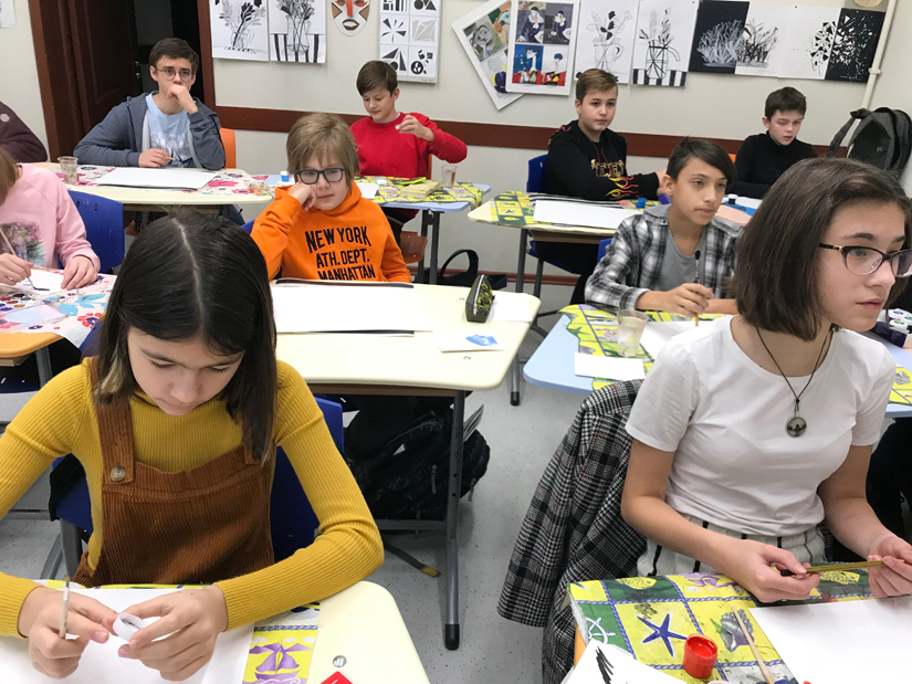 Нет большой разницы в преподавании предмета ИЗО между младшей, старшей школой и студентами. Я говорю со всеми на одном языке, употребляю одни и те же термины и часто намеренно даю одни и те же задания. И очень интересно, что результат почти одинаков по степени стилизации, мастерства и восприятия темы, если только у ребенка нет каких-то специальных навыков и приобретенного ранее художественного опыта.