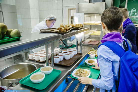 Это начало обеда. Очередь движется на удивление быстро. Линия раздачи похожа на конвейер: навык заполнения подноса у ребят отработан до автоматизма, потому что меню известно заранее, оно опубликовано на сайте школы и обновляется каждый день. Повара вежливо, но настойчиво ускоряют процесс: «Дима, суп сегодня будешь?».