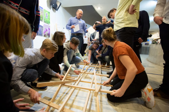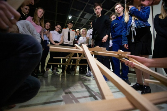 Задания заключались в следующем: две команды школьников строили мост Леонардо да Винчи. Это необычная конструкция, состоящая из 24 палочек без единого крепления. Сборка моста Леонардо – дело увлекательное, требующее терпения и слаженности. Согласно легенде, собрать такой мост могут только те люди, между которыми есть взаимопонимание.