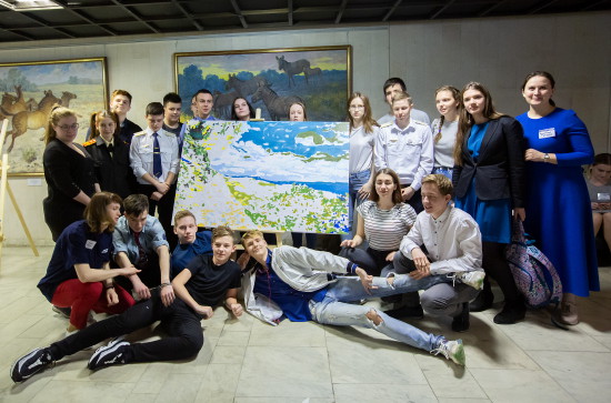 Другие две команды рисовали картину Леонардо да Винчи, техника рисования по номерам. Как выяснилось позже, ребята нарисовали картины, на которых изображены пейзажи гор Краснодарского края.