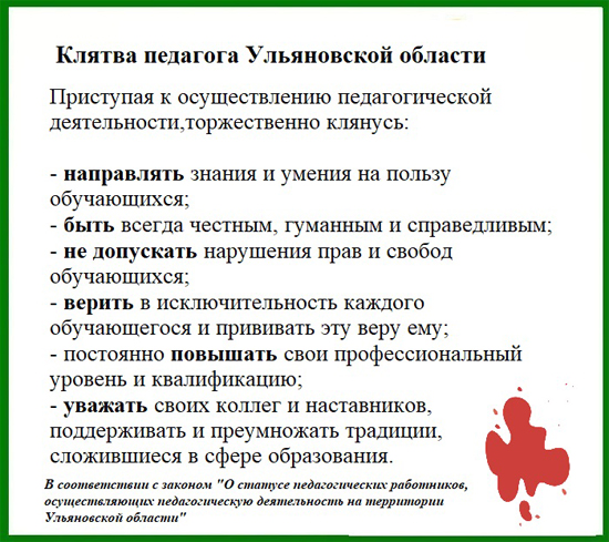 Теперь педагог, поступающий на работу в ульяновское госучреждение, будет обязан публично принести клятву и получить специальный отличительный знак, изготовленный за счёт бюджета.