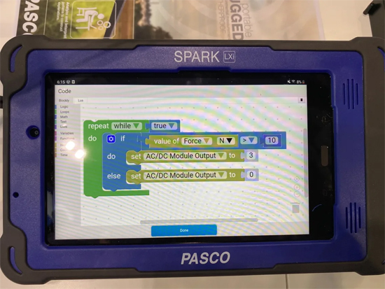 Еще один любопытный набор, интегрирующий программирование с базовой электроникой, или даже скорее электрикой – Wireless AC/DC module, который используется с набором PASCO Modular Circuits. Модуль подключается через Bluetooth и программируется Scratch-подобным языком.