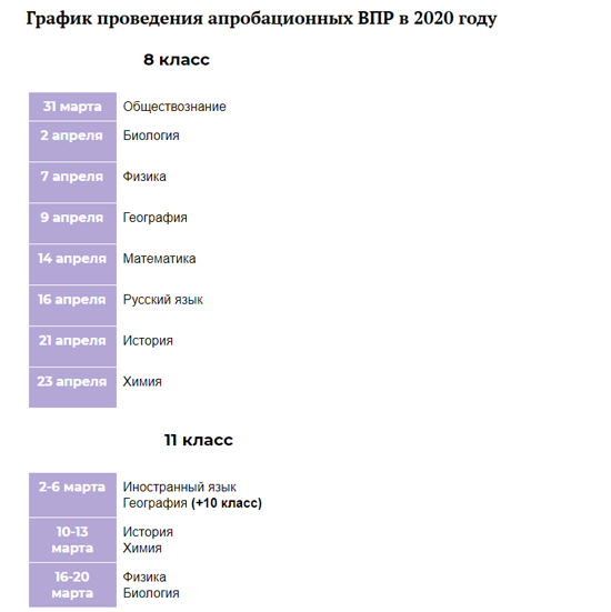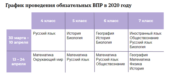 В расписание ВПР на 2020 год (официальный сайт — ФИОКО) внесли существенные изменения: теперь проверочные работы должны будут выполнить ученики 7-х и 8-х классов. У младшеклассников пока ничего не поменялось.
