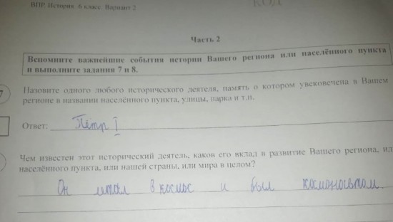 Первый российский император оказался самой многострадальной фигурной в ВПР по истории. Дети назвали его царем Египта, завоевателем, космонавтом. Часть учителей посчитали задание некорректным – шестиклассники пока не проходили период правления Петра I на уроках, поэтому и дали абсурдные ответы на вопросы. Но большинство уверены, что детям в таком возрасте уже надо бы знать элементарные вещи. Часть педагогов и вовсе посчитали такие ответы троллингом и глупыми шутками детей.