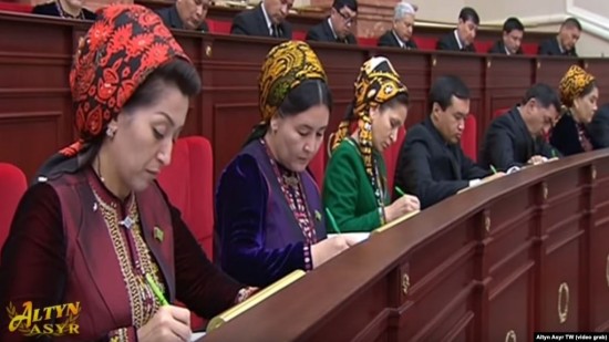 11 февраля во время встречи президента Туркменистана Гурбангулы Бердымухамедова с депутатами парламента, показанного по гостелевидению, можно наблюдать, как депутаты и другие чиновники делают какие-то записи в зелёные тетрадки зелёными ручками.
