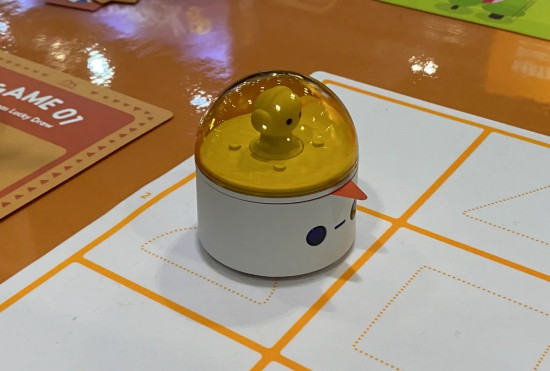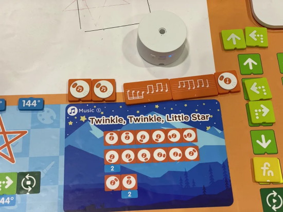 На мой взгляд, самый интересный набор для обучения программированию для детского сада/начальной школы – Matatalab. Мата – это целая экосистема, строящаяся вокруг небольшого обаятельного робота-инопланетянина. Для малышей 3+ предлагается управлять роботом с помощью небольшого круглого дистанционного пульта, который на самом деле уже позволяет программировать несколько шагов последовательным нажатием кнопок. Для детей возраста 4–9 лет робота уже можно программировать небольшими пластиковыми знаками, которые раскладываются на специальном поле. По «легенде», инопланетянин считывает программу с помощью специальной башни и передает на маленький корабль. Базовый набор расширяется дополнительными комплектами знаков, позволяющими вводить в экосистему разные новые элементы, например, музыку или основы геометрии. Есть даже модуль с сенсорами. Робота можно программировать и с помощью приложения на мобильном устройстве. Язык похож на Scratch. Робот также может использоваться с ручкой или фломастером, чтобы оставлять след на поверхности, подобно черепашке Logo.