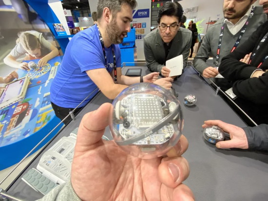Sphero BOLT – робот-шар. Очень интересное решение – пластиковый шар с гироскопом и роботом с несколькими сенсорами и матричным экраном внутри. Выглядит очень футуристично. Еще фантастичнее выглядит комплект – чемодан с пятнадцатью BOLTами. Шарики программируются с планшета, катаются по любой горизонтальной поверхности.