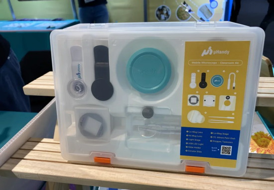 uHandy («мюХенди») – мечта учителя окружающего мира/биологии/кружковода и вообще всех, кто любит простые, но очень эффективные инструменты для естественно-научной экспериментальной работы. Наборы uHandy превращают практически любой планшет или смартфон с камерой в микроскоп с помощью очень простой прищепки с линзой. В минимальный комплект входит линза, несколько образцов препаратов и несколько комплектов для сбора препаратов в природе. В расширенный комплект входит более 60 препаратов и много других аксессуаров. Работать удобнее всего с бесплатным приложением для мобильника – uHandy app.