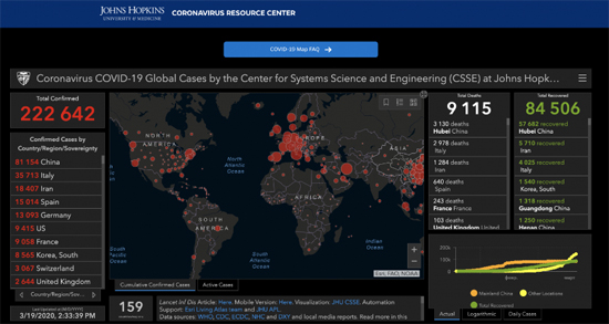 Одним из основных инструментов, для того чтобы превратить информационный хаос в упорядоченную картину миру, стали карты. В первые недели кризиса появилась карта, созданная сотрудниками из университета Джона Хопкинса в США.