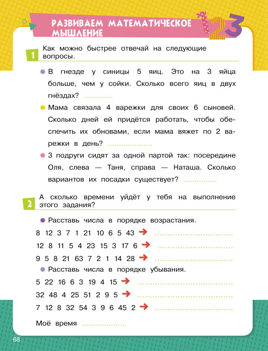 Затем можно предложить ребёнку записать полученные числа в порядке убывания: от самого большого до самого маленького.