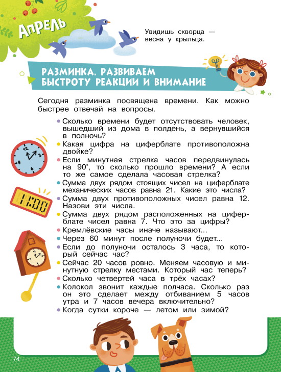 В книгах можно найти много разминок, тренирующих быстроту реакции и внимание. Одним из условий в этих заданиях является то, что ребёнок должен как можно быстрее ответить на вопросы взрослого.
