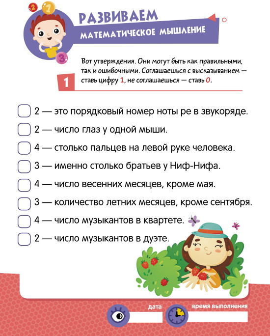 Если ребёнок согласен с утверждением, он записывает единицу. Если не согласен – 0.
