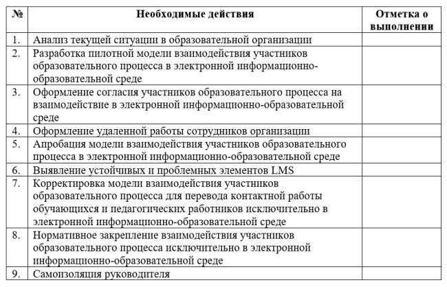 Чек-лист руководителя образовательной организации по обеспечению безопасных условий жизни и здоровья работников образовательной организации