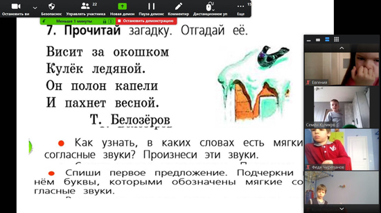 По наблюдению учителя, русский язык дистанционно давать сложно: диктовать через интернет не удобно. Скорость письма у детей разная, срывают уроки и проблемы со связью. А вот математику и окружающий мир изучать так удобно, даже с литературным чтением проблем нет. Дети читают по цепочке, не шумят, ждут своей очереди, поэтому учителю нет необходимости выключать ученикам звук: на уроках тихо.