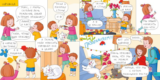 И если книги про занятых родителей – это сборники привычных рассказов для совместного чтения вслух, то книгу про детей решено было делать более игровой и веселой по форме. Ведь чем могут быть заняты дети, как не весёлыми играми? Кроме того, короткие диалоги-репризы очень хорошо ложились на жанр комикса.