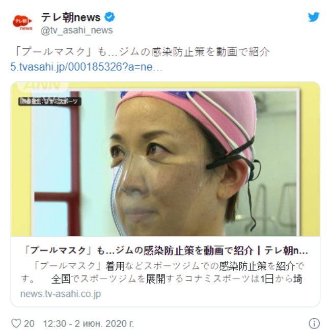 Компания из Токио нашла решение. Её маски сделаны из прозрачного материала, не затрудняют речь, не соскальзывают в воде, в том числе и при активных движениях. Первые образцы были сделаны вручную, но после того как ассоциация клубов для плавания признала эффективность масок, компания-разработчик запустила полноценное производство. К настоящему времени на маски поступило уже более 16 тысяч заказов от 700 организаций со всей Японии.