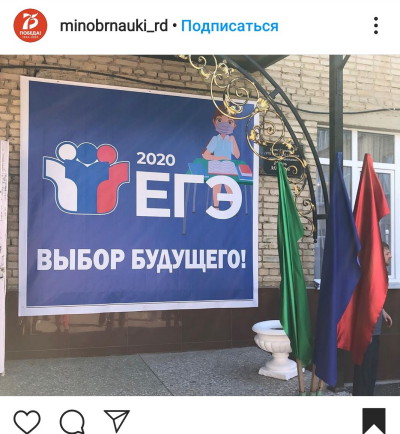 В Дагестане так сильно ждали ЕГЭ, что даже баннер тематический успели оформить. Выпускник на нем изображен в защитной маске. Правда, без перчаток.