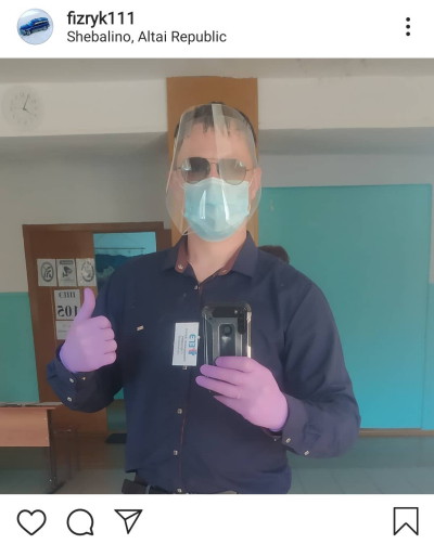Изумительным ковид-луком порадовал педагог с Алтая. Учитель физкультуры Артем Сергеевич надел не только перчатки модного лавандового цвета, но и сразу две защитных маски.