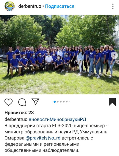 Правда, строгие меры предосторожности остались только на картинке. Буквально накануне в Дагестане состоялась встреча с федеральными и региональными общественными наблюдателями. Судя по коллективному фото, масочный режим почти никто не соблюдает, а про социальную дистанцию все и так понятно без слов.
