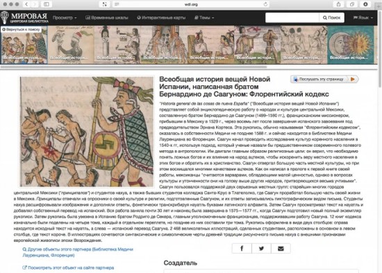 Похожий на Europeana, но уже русифицированный проект «Мировая цифровая библиотека» также может снабдить полезными фактами и изображениями на любую тему. Сайт эстетичен и прост в использовании, так что можно надолго застрять, изучая законодательные акты времен Киевской Руси или хронику чемпионата США по бейсболу 1947 года из простого любопытства.