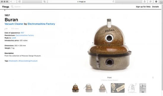 Молодой проект, уже завоевавший признание среди специалистов IT-индустрии и простых пользователей, понравится тем, кто интересуется историей вещей и склонен к созданию собственных коллекций. У каждого предмета или категории предметов есть свой таймлайн, где можно в исторической перспективе отследить эволюцию объекта. Зрителю предлагаются только факты: год, место и внешний вид. Ориентация на объективность и простоту выгодно отличает этот проект среди других. Убедиться в этом поможет, в частности, подборка предметов советского наследия. Проект запустился недавно, но обещает бурно развиваться и расти.