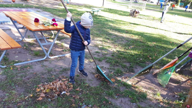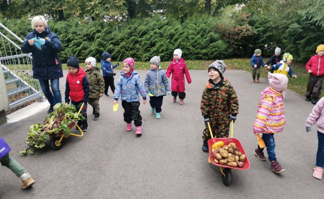 – Трудились на нашем огороде. Собирали осенний урожай: томаты, огурцы, картофель и свёклу, а наши повара приготовили вкусный-превкусный свекольник.