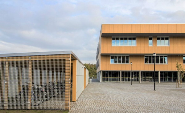 Слева от здания – школьная велопарковка