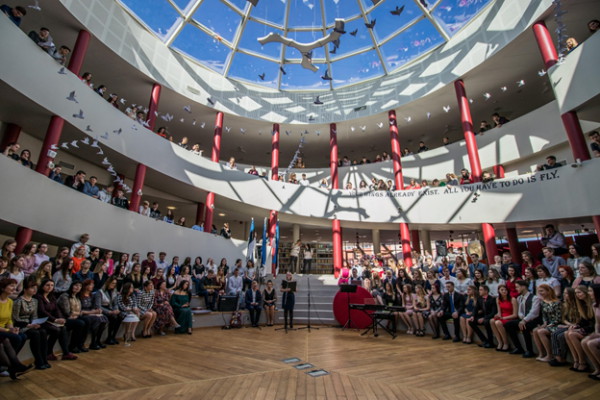 Денис, преподаватель английского языка, рассказывает о своих впечатлениях от первого года работы в школе: «Когда я пришел сюда первый раз, для меня это был шок, потому что я никогда не видел школ, которые бы выглядели, как в каком-нибудь американском городе. Здесь все продумано до мелочей. Ученикам здесь очень удобно, учителям – очень приятно.