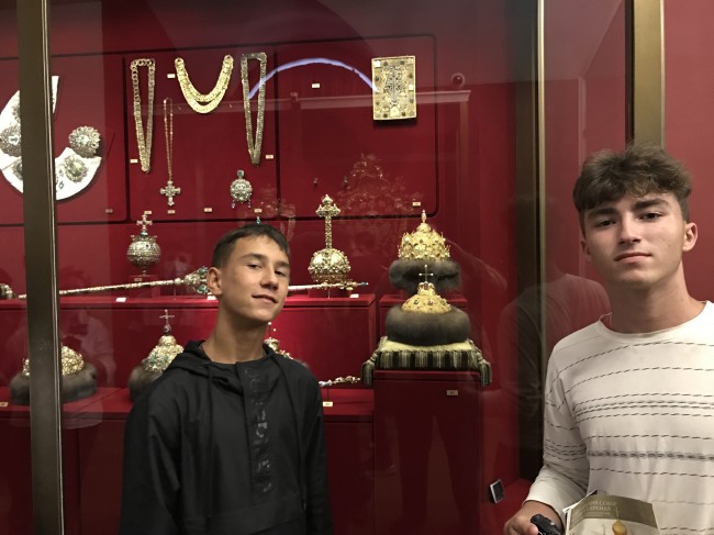 Видели Шапку Мономаха, самую главную шапку великих князей и царей, в золоте и драгоценных камушках. Очень классная шапочка. Слава Богу за то, что я смог ее увидеть в таком юном возрасте.