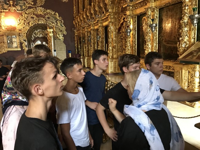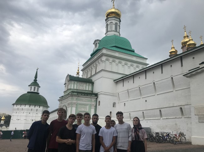 …Мне в особенности понравился Трапезный собор, сделанный в стиле барокко. Там вообще неописуемая красота! Он был очень высоким и расписанным, нам разрешили пройти чуть-чуть дальше, когда зашли, все были в шоке, он был из золота весь, рисунки, вырезанные из дерева. Очень золотой и расписан вручную красиво. Нам рассказали много всего интересного про иконостас из дерева с выпиленными узорами вручную. А в Троицком храме мы прикладывались к мощам преподобного Сергия.