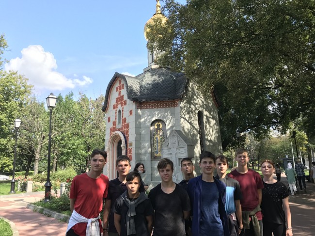 …После очень вкусного завтрака мы отправились гулять по Москве. Вот мы вошли в Покровский монастырь, который хранит мощи св. Матроны Московской. Эта та самая святая, к которой по 4 часа стоят люди, чтобы попросить помощи, совета. И это сущая правда, как мы пришли на территорию монастыря, я в этом прочно убедился. Знаете, мы не стояли 4 часа в очереди, нас пропустили, и мы всего лишь за минуту или две дошли до мощей, приложились к ним и обратились за помощью к Матроне. Это и есть Божья воля, я так думаю. Еще нам дали с собой бутоны роз, которые лежали на святых мощах. После монастыря мы отправились в Даниловский монастырь. Зашли вовнутрь, приложились к мощам и иконам, поставили свечи. Видели икону святого Спиридона, и под ней лежит истоптанный башмачок. Александр Геннадьевич рассказал, что он ходит и помогает людям до сих пор. И вот уже отправляемся в наши «кельи» обедать и собирать вещи в аэропорт. А вы думали, Москва занимает мало времени?