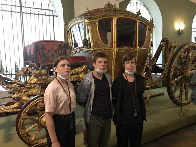 В Оружейной палате нам выдали аудиогид, который мы слушали на протяжении всей экскурсии. А еще я видел кареты великих императриц. В общем, все было впечатляющим. Нам аудиогид рассказывал про платья, кареты, троны, короны. Было интересно очень.