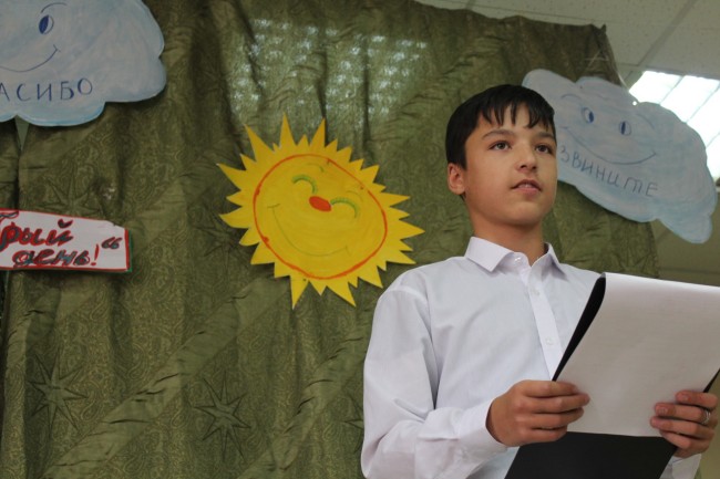 ...Я очень быстро стал учить слова, и сценарий стал для меня уже маленьким, и учить там нечего. Еще я очень хорошо общаюсь со своими одноклассниками. Чего я открыл в друзьях? Мои друзья очень хорошо выступают, и мне очень помогали учить, и девочкам. Что я открыл во взрослых? Взрослые очень волновались за нас и помогали нам учить сценарий, и выступили мы хорошо.