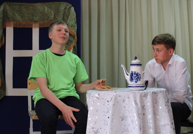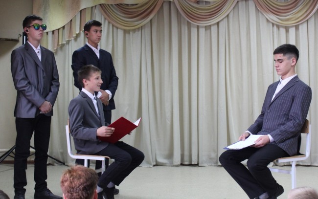 …Я играл роль японца. Во взрослых я открыл поддержку и помощь, надежду. В себе я открыл хорошие качества и успех. Пацаны классно выступили. Больше всего мне понравилось выступление деревообработки и песня, которую они пели. Нам помогали подготовиться к выступлению Дарья Сергеевна, Валерия Владимировна и наш мастер Виктор Анатольевич.